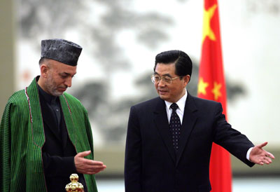 Jintao met his counterpart Hamid Karzai in Beijing.