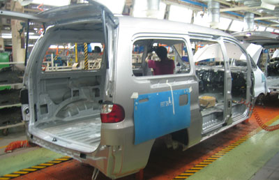 newly-produced commercial vehicle, Refine MPV on the assembly line. The Chinese