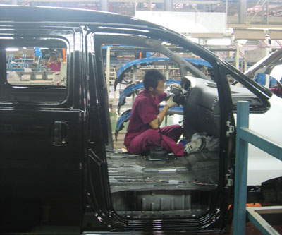 A trip to JAC (chinadaily.com.cn) Updated: 2006-08-04 09:15  A worker in the factory of JAC is fixing an accessory to a