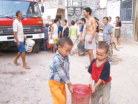 from a tanker sent to relieve the drought in Quma Town of Yunyang County