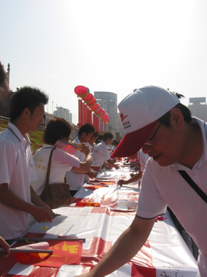 Participants sign their names at the ceremony of brand promotion in Lanzhou on August 22.