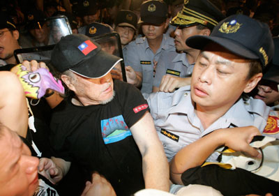 Taipei rally calls for Chen Shui-bian to quit (Reuters) Updated: 2006-09-03 08:52 Protesters scuffle with policemen outside the residence of