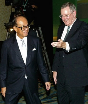 Ka-shing, left, is shown the way by Steve Forbes, president and CEO of Forbes