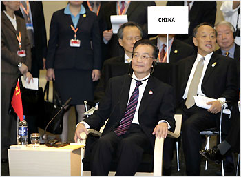 Chinese Premier Wen Jiabao (C) attends a meeting of Asian