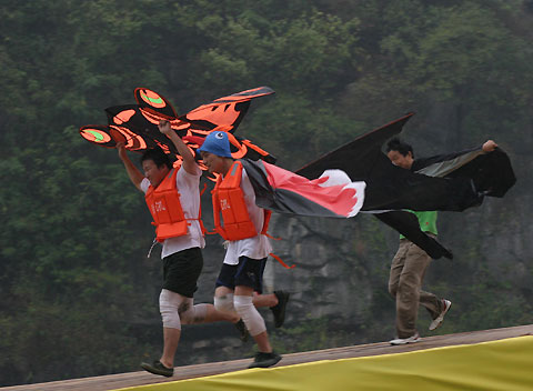 Participants compete at China Birdman Contest 2006 in Lianyuan, Central China's Hunan Province on October 7. Nearly 50 birdmen participated in the nationwide games. [newsphoto]