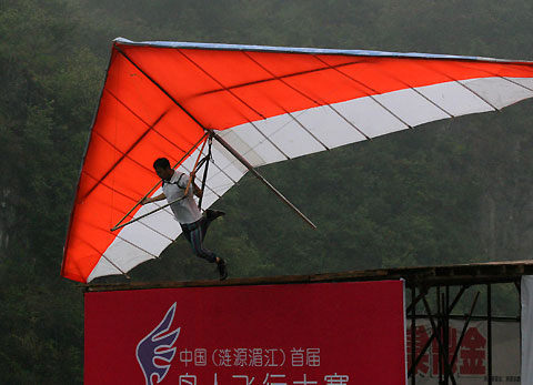 A participant compete at China Birdman Contest 2006 in Lianyuan, Central China's Hunan Province on October 7. Nearly 50 birdmen participated in the nationwide games. [newsphoto]