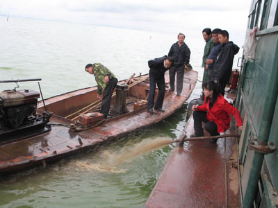 (newsphoto) Updated: 2006-10-12 10:19  An engineering ship discharges greasy waste water into the Dianchi