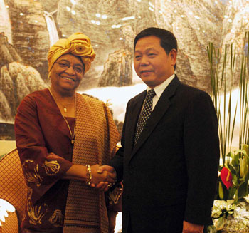 Liberian president visits South China(Xinhua)Updated: 2006-10-30 10:30 SHENZHEN - Liberian President Ellen Johnson-Sirleaf on Sunday visited Shenzhen, a special economic zone in south China's Guangdong Province.