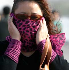 with a scarf as a cold snap arrives in Beijing, November 4, 2006.