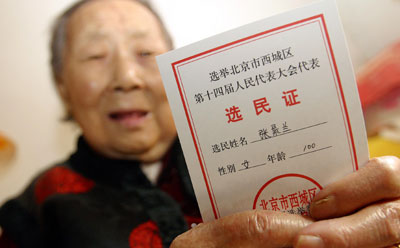 2006. It is the 14th time for Zhang to serve as a voter. Voters in Beijing's 18