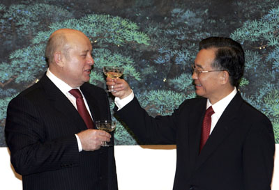 China's Premier Wen Jiabao (R) and Russia's Prime Minister Mikhail