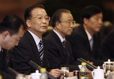 Chinese Premier Wen Jiabao speaks during a meeting with visiting