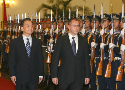 Chinese Premier Wen Jiabao (L) and Bulgarian Prime Minister
