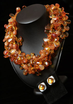 A necklace designed by Lo Kai Yin is shown at her home in Hong Kong November 23, 2006. Mirroring her home city of Hong Kong, jewellery designer Kai-Yin Lo blends and balances opposites -- east and west, old and new, art and commerce. Photo taken on November 23, 2006.[Reuters] ![]()