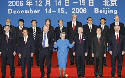 a photo-call with US Treasury Secretary Henry Paulson (front row, 3rd L),