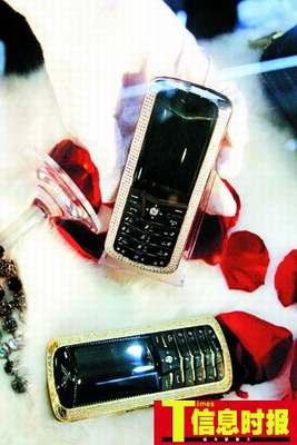 Mobile phones made of gold and diamonds are displayed on the Top Show, a luxury goods exhibition in Shenzhen December 17. [Information Times]