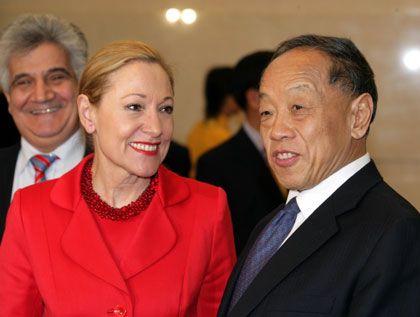 In their meeting yesterday, Ferrero-Waldner proposed joining hands with China to tackle energy security, trade and climate change. Li said the two sides should work together to push forward negotiations and solve their disputes. He reiterated China's stance that the EU arms embargo be lifted and the nation recognized as a market economy. Michael Jennings, press officer of the European Commission delegation, said no deadline had been set for negotiations but added that two years would be a reasonable timeframe to finalize the pact. The agreement will essentially codify existing EU-China ties, and replace the 20-year-old pact that focused only on trade and economic cooperation. Ferrero-Waldner said a new agreement is needed because the existing one has not kept pace with "our rapidly expanding partnership". "Twenty years ago, we were only trade partners, but now we are strategic partners, which means broader and deeper cooperation," she told the briefing. China's rapid development and the EU's expansion offer a golden opportunity for strengthening relations, she said. "I agree with Ferrero-Waldner's comments that China and the EU are not only trade partners, but all-round strategic partners. We share broad common interests and common positions," said Li. Europe is China's biggest trading partner while China is the second-largest trade partner for the EU. Bilateral trade hit a record $260 billion last year. Ferrero-Waldner also signed three financing agreements with Vice-Minister of Commerce Yi Xiaozhun earlier yesterday. They were for the launch of a Europe-China School of Law, a joint project on the protection of intellectual property rights, and a business management training program. "A substantial impetus for this rapid development of bilateral ties stems from shared interests", said the EU Ambassador to China, Klaus Ebermann. Thomas Bork, a historian teaching at Beijing Foreign Studies University, said "the EU approach to China is very pragmatic". "It doesn't come in and say 'you have to change a great deal'. It prefers practical, gradual co-operation." |