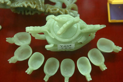 A set of jade tea wares on public auction in Hefei, East China's Anhui Province January 29, 2007. Possessions of corrupt officials were auctioned with many believing the move was expected to give a warning signal to local officials and help rein in corruption. [Newsphoto]