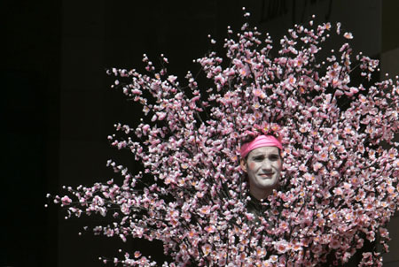 A model dressed as a peach blossom poses during a promotional event to celebrate the upcoming Chinese new year, at a shopping mall in Hong Kong January 30, 2007.[Reuters] ![]()