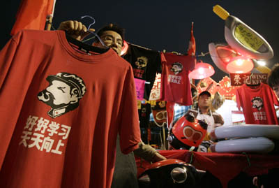 A vendor displays a T-shirt he designed himself at a new year market in Hong Kong February 15, 2007, as part of the upcoming Lunar New Year celebrations. [Reuters]