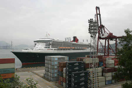 Queen Mary 2 arrives at Kwai Chung Modern Terminals
