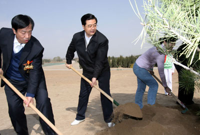 tree at the Beijing Olympic Forest Park to mark the capital's