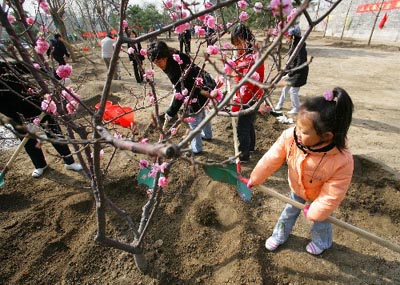 Pupils and citizens transplant trees to the Ming Dynasty East Wicket Wall