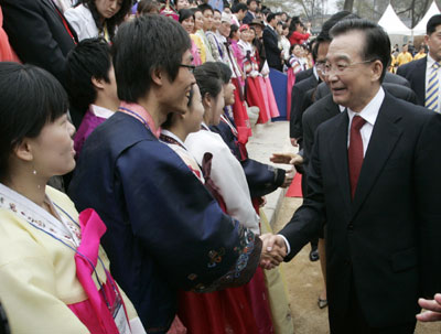 Premier Wen meets S.Korea youths(Reuters)Updated: 2007-04-11 08:48