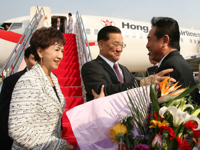 Lien Chan arrives in Henan(Xinhua)Updated: 2007-04-17 15:07 ZHENGZHOU -- Lien Chan, Honorary Chairman of the Kuomintang Party, arrived in Zhengzhou, capital city of central China's Henan Province, on Monday afternoon, heading a 27-person Taiwan delegation.