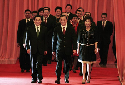 the Communist Party of China enters the hall with Lien Chan, honorary