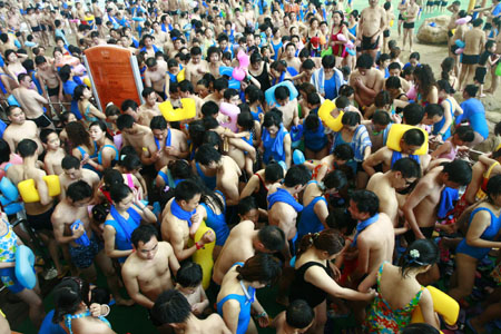 Visitors crowd into the Chinese Dead Sea resort in Daying County in