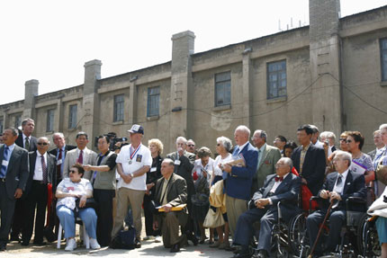 gather at the site of the prisoner of war camp where they were held by
