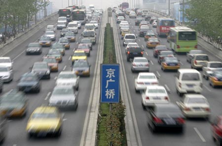 A recent Sina.com survey showed 55 percent netizens considered the 3 million vehicles bad news, with 31 percent fearing the environment would worsen and 25 percent worrying that traffic movement could become more frustrating. Only one-fifth of the respondents were delighted with the news, with the rest giving a mixed reaction. Mayor Wang Qishan has said the number of vehicles symbolizes the city's prosperous and fast development. And the government is confident of facing the challenge and improving the flow of traffic, he said. "Three million is a milestone, indicating the level of private car use in Beijing and first-tier cities in developed countries. At present, one household in Beijing owns 0.7 vehicle." "But, the use of public transport is at a lower level in Beijing. In New York City, public transport shares 76 percent of the total traffic flow. The number is 91, 40 and 70 percent in Tokyo, London and Paris, respectively. But in Beijing it's still 29 percent." Lu Huajin Director of Transportation Research Institute at Tsinghua University "The increase in the number of vehicles should be under control in accordance with the traffic." Jia Xinguang Auto policy and market researcher "The use of vehicles should be tightened. But purchase should be left free. By raising parking fees in busy districts and during peak hours, the flow of traffic could be improved and congestion lessened. This is a common practice in metropolises across the world." Zhang Jianfei Deputy director of the planning research institute, under the Ministry of Communications "Obviously, more jobs will be created in the car-cleaning and polishing industry. But this benefits will come at the cost of higher emission and road hazard." An anonymous netizen