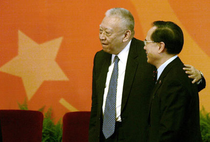 Seminar marking 10-year-old HK Basic Law(Reuters)Updated: 2007-06-06 12:38 ![]() Hong Kong's Chief Executive Donald Tsang (R) and former Chief Executive Tung Chee-hwa talk after the seminar marking the 10th anniversary of the entry into force of the Hong Kong Basic Law at the Great Hall of the People in Beijing June 6, 2007. [Reuters]