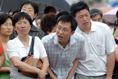 Parents wait as their children take the National College Entrance Exams in Shenzhen, Guangdong Province June 7, 2007. More than 10 millions students across China picked up their pens on Thursday to take national university entrance exams. [newsphoto]