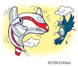 But now authorities at Beijing Capital International Airport have declared war on the humble bird, declaring them an aviation menace. "Pigeons are now one of the greatest threats for airplanes," Huang Jianjun, director of the airport's flying area management department, told China Daily on Friday. "And the situation can only get riskier when the number of flights increases leading up to the 2008 Olympic Games. "It would be disastrous if one of them flies into a plane, and causes a crash." Last Monday nine pigeons collided with an aircraft landing at the airport. "It was sheer luck that the plane was about to land and therefore flying quite slow, so it didn't sustain any major damage," Huang said. The birds were carrier pigeons and their splattered remains showed rings on their legs. It was later revealed that the birds belonged to a farmer living about 3 km away from the runway. It was the eighth recorded incident of pigeons colliding into planes, since the airport opened in 1998. Fortunately there have been no crashes. "We are worrying about each flight coming and going because there are more than 100 pigeons flying around the runways every day," Huang said. "It is with urgency that local authorities ban pigeon breeding, feeding and flying anywhere near the airport." Villages within the airport's immediate fly zone - which extends 6 km to both sides of the runway and 15 km on both ends of it - hundreds of households are reportedly keeping pigeons. The airport has done everything to control this potential aviation menace. Authorities there have spent several million yuan on loudspeaker devices that mimick the sounds of eagles, owls and other predatory birds, yet the move had so far failed to keep the pigeons away. Even tall nets erected around the runways have shown limited success in keeping the pigeons away from flying aircraft. More than 23,000 Beijing residents are registered with the Beijing Carrier Pigeon Lovers' Association. A fighter aircraft from the Lanzhou Military Command crashed last November after it collided with pigeons. The pilot died when he attempted an emergency landing instead of ejecting, fearing the plane would crash into populated areas.