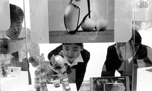 Visitors to an exhibition, held in 2004 in Beijing to promote the CEPA, look at a range of electronic products.