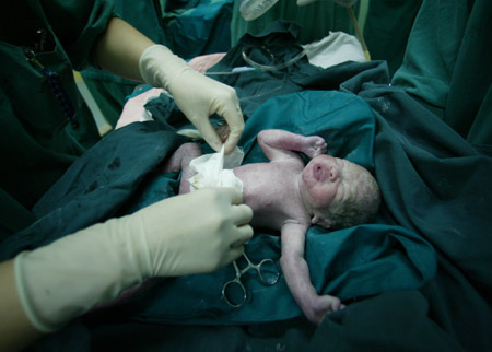 A nurse looks after a newly-born quadruplet in a hospital in Wuhan, Central China's Hubei Province, June 28, 2007. A woman from Guanxi Zhuang Autonomous Region gave birth to the four babies which is rare, as the chance of having quadruplets is one in every 300,000 to 500,000 births. [newsphoto] |