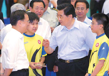 HONG KONG: President Hu Jintao reaffirmed on Friday the central government's strong commitment to the 'one country, two systems' concept. The government also stands by its commitment to the principle of "high autonomy of Hong Kong people governing Hong Kong", he said. Both core ideals ultimately promote the long-term stability and prosperity of the region. Hu, general secretary of the Central Committee of the Communist Party of China (CPC) and chairman of the Central Military Commission, made the pledge when meeting Donald Tsang, chief executive of the Hong Kong Special Administrative Region (HKSAR). Hu said Hong Kong's development was a proud achievement, and he had great confidence in its future. He said he hoped the SAR government, led by Tsang, would further focus its efforts on improving people's livelihoods, boosting economic development and bolstering its administrative capability. Hu arrived here on Friday on a three-day visit to attend celebrations of the 10th anniversary of Hong Kong's return to the motherland. Tsang thanked the central government for its support, saying the Hong Kong people had been well aware of the advantages of the "one country, two systems" from their experiences in the past decade as well as the importance of exchanges and cooperation with the mainland. After months of preparation, the HKSAR government is rolling out 460 events combining Chinese and Western elements for the celebrations. National and regional flags have been raised on the vessels docked in the Victoria Port; and special signs and banners marking the 10th anniversary have been erected along Hong Kong's streets. A group of Buddhists will toll a bell for three hours to mark the handover on the eve of July 1 before the big day begins with a flag-raising ceremony and ends with a fireworks display. The People's Liberation Army, which has maintained a low-key presence in the SAR, will be involved in four events, including a demonstration on Sunday by its parachute brigade. The British Museum has offered more than 200 artifacts for display while a series of sports events have been planned with big-name international stars. Local residents have been upbeat about Hu's visit, the first one to Hong Kong as Chinese president. "We welcome the president's visit," Ho Ka-wai, a taxi driver, said. "In the past 10 years, Hong Kong experienced difficulties such as Asian financial crisis and SARS pandemic and now the economy is again upbeat. I hope the central government can continue to support Hong Kong and help Hong Kong in its economic growth." Hu's itinerary includes a military review of the People's Liberation Army Garrison in Hong Kong on Saturday. New arrangement expands cooperation According to the supplement, the asset requirements of Hong Kong banks hoping to purchase stakes in mainland counterparts was cut to $6 billion from $10 billion. And Hong Kong tourism agencies, hospitals, public utility-related businesses, and elderly and environmental services would be given wider access to mainland markets. The amendments are scheduled to take effect on January 1, 2008. Speaking at the signing ceremony, Hong Kong Financial Secretary Henry Tang said the new CEPA package would provide broader opportunities for Hong Kong business while reinforcing Hong Kong's capabilities of better tapping the mainland market. He said that the new package provides a positive response to a number of recommendations included in the Final Report of the Economic Summit of the mainland's 11th Five-Year Plan. "It's stepping forward gradually, to make ways of doing business more diversified on the mainland," said James Sung, a political science lecturer at the City University of Hong Kong. "The mutual recognition of professional qualifications from both the mainland and Hong Kong is going to encourage better cross-border communications." Broadened areas The fourth amendment of the arrangement covers 38 different sectors, making it the furthest reaching yet. The new accord enhances cooperation in finance, conventions and exhibitions, and mutual recognition of professional qualifications. In addition to easing the capital threshold, the mainland would also develop green lanes for Hong Kong banks to set up branches in new areas. And mainland banks and fund management companies would also be able to establish subsidiaries in Hong Kong. To boost tourism, the agreement stipulates that the minimum annual business turnover required of a Hong Kong travel enterprise setting up a joint venture or wholly owned enterprise on the mainland would be respectively reduced to $8 million and $15 million. The required capital investment for Hong Kong medical-services suppliers setting up equity or joint ventures on the mainland would be reduced from 20 million yuan ($2.6 million) to 10 million yuan ($1.3 million). Hong Kong service providers would be allowed to operate elderly service agencies in the form of wholly owned, private, non-governmental enterprises in Guangdong Province on a pilot basis. According to the clauses addressing public utilities, Hong Kong service providers would be allowed to set up wholly owned operations to construct and operate gas, heating and water-supply networks, in addition to water-drainage services, for medium-sized mainland cities. Warm applause Vice-Chairman of the Hong Kong Association of Travel Agents Paul Leung said the arrangement would be a win-win situation. "It not only helps increase exposure for Hong Kong travel agents in the mainland market, but also, the quality of mainland players can be improved through the consequential competition," he said. "Small and medium-sized Hong Kong banks can speed up their mainland expansion with the help of the CEPA," said the Hong Kong Association of Banks Chairman Peter Sullivan. |