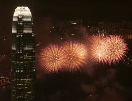 Fireworks in Hong Kong light up the sky during celebrations marking the 10th anniversary of the former colony's return to China July 1, 2007. [Xinhua]