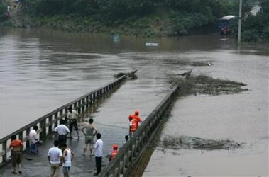 75 villages flooded to ease swollen river(Reuters)Updated: 2007-07-10 14:37 BEIJING - China flooded dozens of evacuated villages on Tuesday to ease pressure from a swollen river after torrential rains that have killed more than 100 people nationwide.