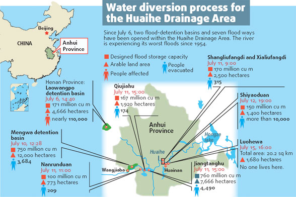 husband were forced to abandon their crops submerged by the rising Huaihe River.