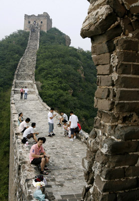 Visitors rest at the Simatai section of the Great Wall on the outskirts of Beijing August 4, 2007. [Reuters]