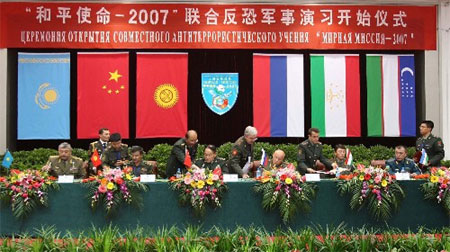 Updated: 2007-08-10 10:38 ![]() Liang Guanglie, Chief of the General Staff of the Chinese People's Liberation Army, declared the official commence of the SCO joint drill in China's Urumqi August 9, 2007. [Xinhua] ![]() The chiefs of staff of armed forces of Shanghai Cooperation Organization (SCO) member countries ordered commanders of various troops to launch a long-prepared anti-terror drill "Peace Mission 2007" at noontime in China's Urumqi August 9, 2007. [Xinhua] The drill attended by China, Kazakhstan, Kyrgyzstan, Russia, Tajikistan and Uzbekistan "is not intended to aim at any third party," said Liang Guanglie, Chief of the General Staff of the Chinese People's Liberation Army, at a press conference. "It does not concern the interest of any third party nor makes threat to any country," he said, following the consultations at the capital city of northwest China's Xinjiang Uygur Autonomous Region. According to Liang, Presidents of the SCO member countries and their secretaries of defence will arrive at the drill venues to observe the drill. It will also attract hundreds of journalists and foreign military attaches. Liang said the drill will be carried out in line with the Charter of the United Nations and the Charter of the SCO. General Liang presided over the consultations attended by Chiefs of Staff of armed forces of the SCO member countries. Chinese and Russian general directors of the joint drill, PLA's General Xu Qiliang and Russian Admiral Vladimir Moltensky, delivered reports on the plans, preparations and implementation of the drill to the Chiefs of Staff. Liang declared the official commence of the joint drill at 12:00 (Beijing time) commissioned by Chiefs of Staff of the SCO member countries. "The joint anti-terror drill will enhance mutual trust among SCO members in military and security fields," Liang said, adding that the drill will also improve the members' abilities to deal with new challenges and threats. The drill is of great importance for the members in jointly maintaining and ensuring regional peace and stability, Liang said. Kazakhstan Chairman of Joint Chiefs of Staff Mukhtar Altynbayev said that terrorism, separatism and religious extremism constitute immediate threats to the people of the SCO member countries and jointly cracking down on the three evil forces is a main task of the SCO. Kyrgyzstan Chief of the General Staff Boris Ugai said that SCO members have conducted fruitful cooperation in recent years in defence and called for enhancing the cooperation to safeguard their common interests. The top priority of the cooperation among SCO members is to maintain regional peace and enhance regional security and mutual trust, said Russian Chief of the General Staff Yury Baluyevsky. Tajik Chief of the General Staff Ramil Nadirov said cooperation with SCO members is one of the most important foreign policies of Tajikistan. About 6,500 troops and 80 aircraft are expected to take part in the drill, including 2,000 troops and 36 aircraft from Russia, in Chelyabinsk in Russia and in Urumqi from Aug. 9 to 17. A total of 1,600 officers and soldiers from land and air forces of Chinese People's Liberation Army will participate in the drill held at Chelyabinsk in Russia's Ural Mountainous region. |