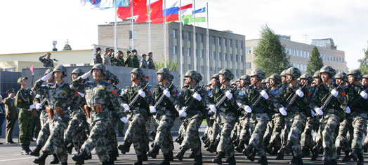 Soldiers march in formation during a parade at a military base in Chelyabinsk of Russia August 11, 2007. [Xinhua]