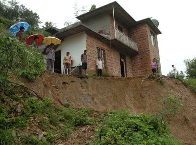 | Local residents inspect a land destroyed by floods in Ji'an County, East China's Jiangxi Province on August 20, 2007. Typhoon Sepat moved into the province on Monday, bringing torrential rain and high winds which caused havoc in a number of towns. [Xinhua]