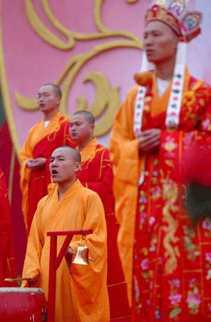 Monks perform at the opening ceremony of the 4th Buddhism Cultural Festival and the 18th International Tourism Month at Wutai Mountain of Xinzhou City, North China's Shanxi Province. [Xinhua]