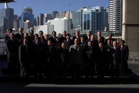Members of APEC Concluding Senior Officials Meeting pose for a photo at the Sydney Convention and Exhibition Center September 2, 2007. [Xinhua]