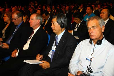 | Participants listen to a keynote speech at the World Economic Forum's (WEF) Inaugural Annual Meeting of New Champions, which opened in Dalian, a port city in Northeas China's Liaoning Province Thursday, September 6, 2007. [Xinhua] |