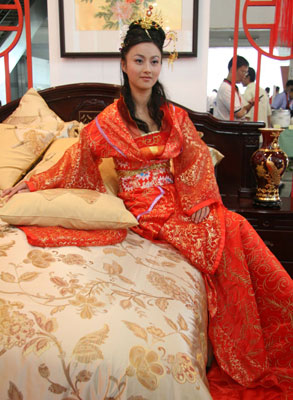A model presents a creation during the ninth Nanjing International Fashion Show held in Nanjing, East China's Jiangsu Province September 7, 2007. The show feauturing fashion designers and creativity attracted more than 300 entreprises from home and abroad. [Newsphoto]